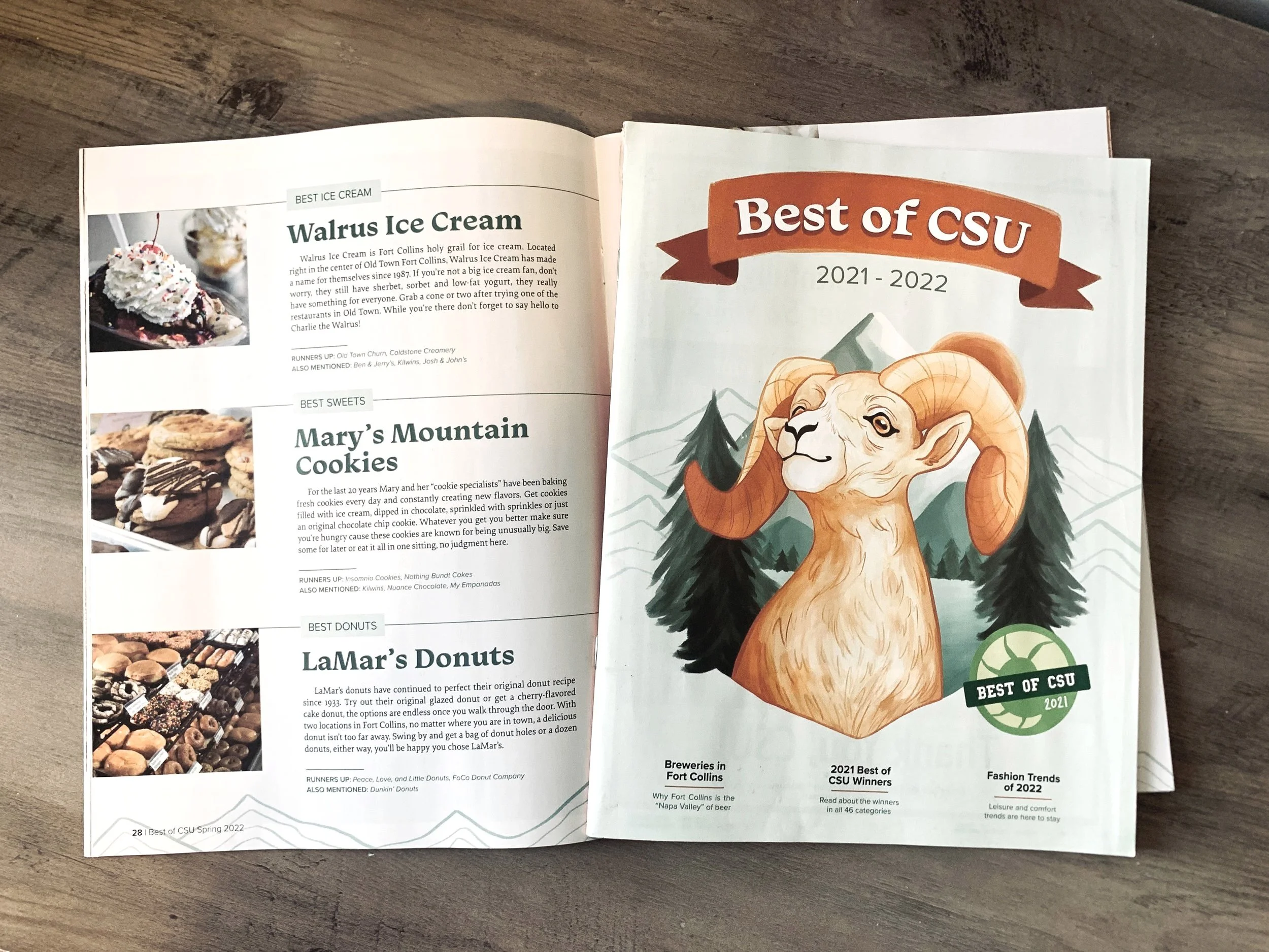 Best of CSU is an annual publication by Rocky Mountain Student Media that highlights the best local businesses in Fort Collins, as voted by the Colorado State University community. I had the amazing opportunity to be the publication’s creative director for the 2021-2022 edition. This entailed fully designing, laying out, and illustrating the cover of the publication.